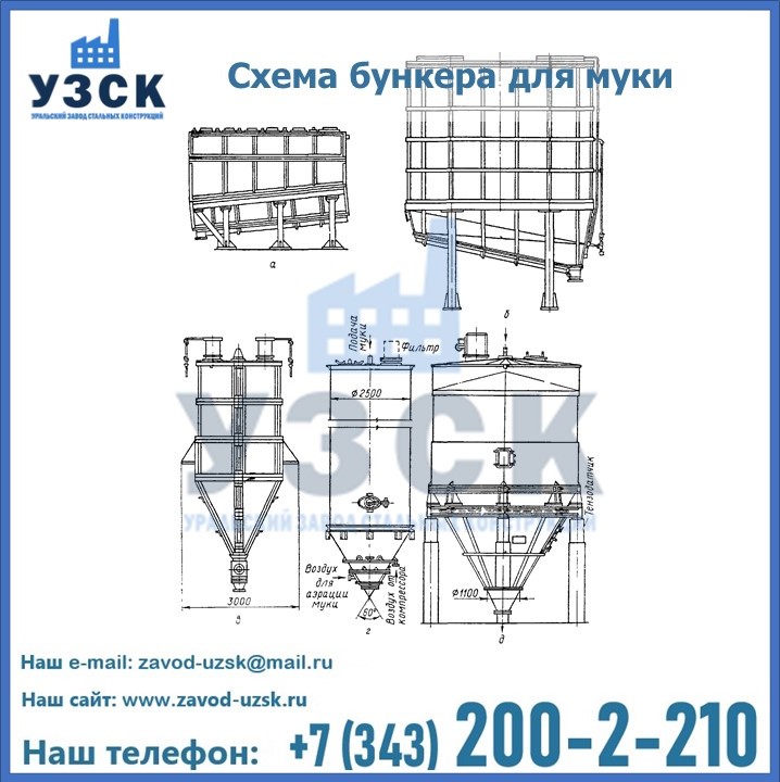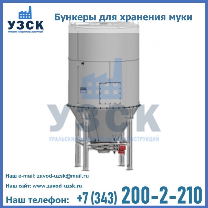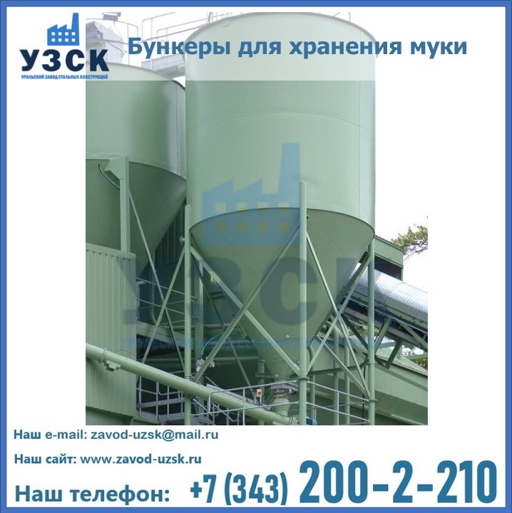 Завод «УЗСК» в Альметьевске проектирует, производит и поставляет целевое оборудование, в том числе, бункеры для хранения муки и прочих сыпучих материалов.