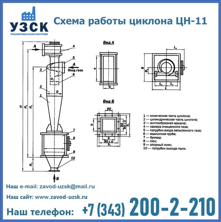 При этом ощутимой разницы в цене между универсальным и узконаправленным, подобранным в соответствии с конкретными техническими требованиями циклоном, нет. Стоимость воздухоочистительного оборудования типа циклон обусловлена маркой и толщиной стали, из которого он изготовлен, сложностью и специфичностью конструкции, наличием дополнительного оснащения (бункер, улитка и другие). При необходимости, на заводе УЗСК в Альметьевске будет изготовлен циклон по индивидуальным техническим чертежам заказчика.