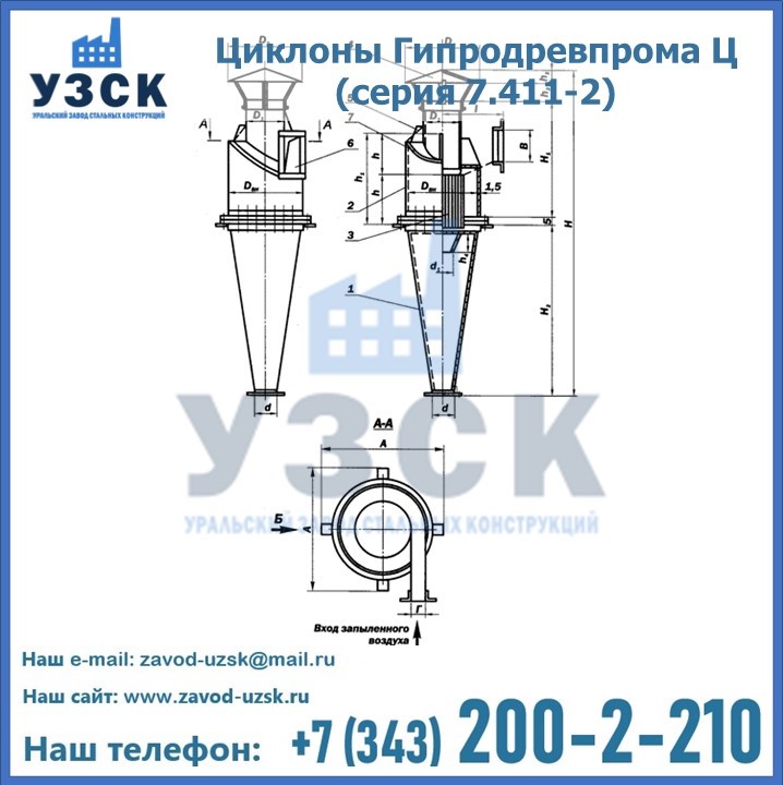 Циклоны Гипродревпрома Ц (серия 7.411-2) высокого качества можно купить в компании «УЗСК» в Альметьевске. Наши специалисты предоставят всю необходимую информацию информацию и помогут с выбором модели циклона. Подробные технические характеристики, конструкцию, параметры, ассортимент и стоимость продукции можно также найти на сайте УЗСК.