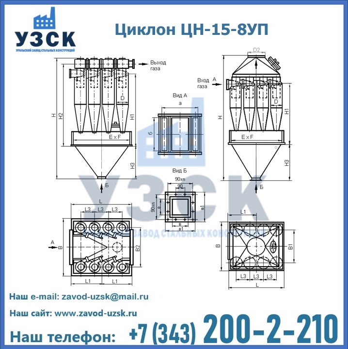 Завод «УЗСК» в Альметьевске предлагает большой выбор циклонов ЦН-15-500×8УП и прочих устройств, полностью укомплектованных и готовых к эксплуатации. Мы гарантируем соответствие оборудования всем требованиям ГОСТ и ТУ, износостойкость и высокую производительность предлагаемого оборудования. Уральский Завод Стальных Конструкций изготавливает и продает надежное, эффективное и производительное оборудование, имеющее длительную гарантию и большой эксплуатационный ресурс. Если требуется изготовить циклон нестандартных размеров, то такой вариант выполнения заказа тоже предусмотрен, так как предприятие имеет собственные производственные площади и надежных поставщиков. На все поставляемое или производимое оборудование имеются чертежи и прочая техническая документация. Заказать и купить циклоны или прочее оборудование высокого качества и по доступной цене можно через наш сайт или по указанному в разделе «Контакты» телефону.
