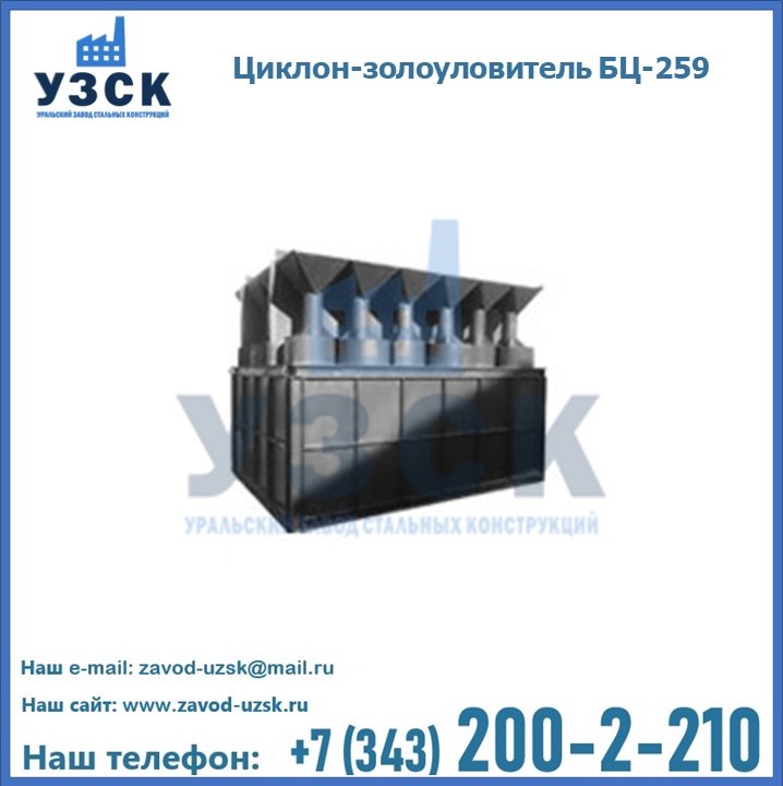 Если вы планируете купить то или иное оборудование, например, циклоны-золоуловители БЦ-259, то рекомендуем заказать данный товар на сайте УЗСК. Мы производим и реализуем продукцию высокого качества по приемлемой цене. Эксперты Уральского Завода Стальных Конструкций в Альметьевске проконсультируют вас по всем вопросам, помогут сделать выбор и оформить заказ без лишних временных затрат. Мы гарантируем соответствие нашей продукции всем требованиям ГОСТ и ТУ, а также износостойкость и высокую производительность предлагаемого оборудования. Если требуется изготовить циклон нестандартных размеров, то такой вариант выполнения заказа тоже предусмотрен, так как предприятие имеет собственные производственные площади и надежных поставщиков. На все поставляемое или производимое оборудование имеются чертежи и прочая техническая документация. Заказать и купить циклоны или прочее оборудование высокого качества и по доступной цене можно через наш сайт или по указанному в разделе «Контакты» телефону.