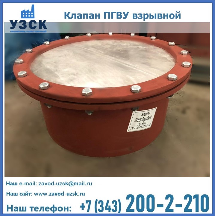 Взрывной предохранительный клапан ПГВУ в Альметьевске оборудуется в виде сквозного отверстия (окна) на взрывоопасном элементе энергетических установок. Такое окно закрывается специальной мембраной, а также оснащается створками или материалом, способным легко разрушиться в результате взрыва, что позволяет избежать высокого давления, образуемого взрывом.