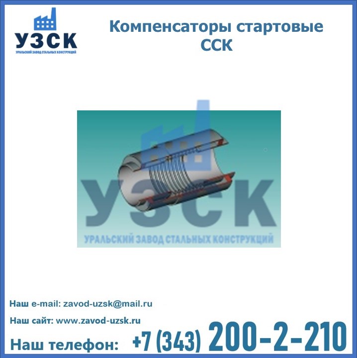 Стартовые компенсаторы, при прокладке прямолинейной системы труб, устанавливается через интервалы, установленные в проекте. В готовую траншею по всей протяженности системы, кроме участков, оборудованных ССК, засыпается грунт. В процессе первоначального нагревочного пуска трубной системы происходит удлинение труб, в результате этого сильфоны стартовых компенсаторов сжимаются. Внешняя стальная оболочка компенсаторов, после нагревания, приваривается. Трубы таким образом фиксируются в грунте, а последующие температурные перепады трансформируются в допустимые стабильные напряжения. Уральский Завод Стальных Конструкций предлагает готовые изделия, а также оборудование под заказ. Наш завод располагает всеми необходимыми возможностями для производства нестандартных компенсаторов ССК. Завод «УЗСК» предлагает большой выбор качественных и надежных сильфонных стартовых компенсаторов, полностью укомплектованных и готовых к эксплуатации. Мы гарантируем соответствие нашей продукции всем требованиям ГОСТ и ТУ, износостойкость и высокую производительность. Наше предприятие поставляет и производит оборудование, имеющее длительную гарантию и большой эксплуатационный ресурс. Если вы хотите заказать сильфонные компенсационные устройства ССК или другое оборудование с доставкой, наши специалисты помогут рассчитать стоимость транспортных расходов и организуют перевозку товара. Вы можете оформить заказ на продукцию на нашем сайте в Альметьевске, для этого достаточно заполнить форму обратной связи.