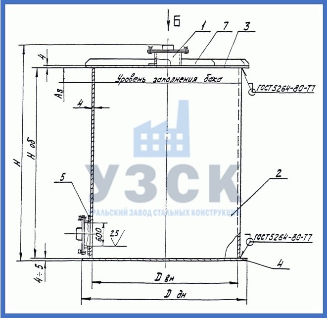 Геометрические размеры вертикальных баков-аккумуляторов