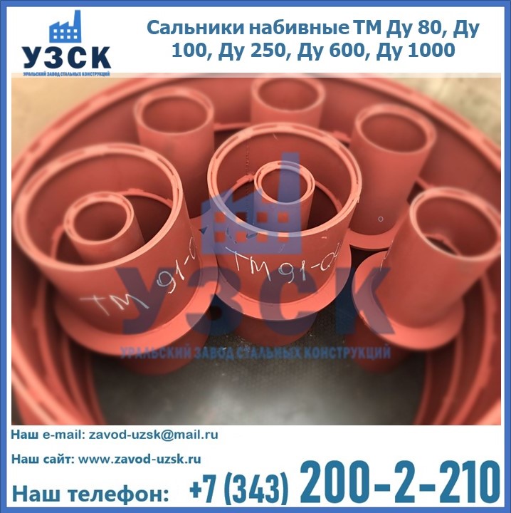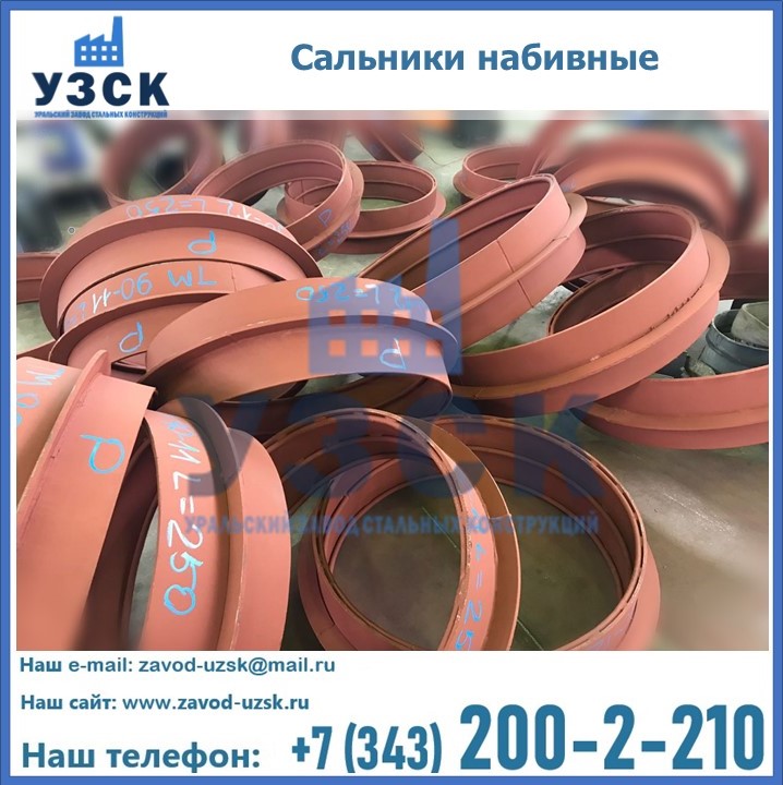 На производственных площадях Уральского Завода Стальных Конструкций в Альметьевске профессиональные сотрудники занимаются проектированием и разработкой различных закладных деталей, в частности осуществляется производство и реализация набивных и нажимных сальников. Все изделия, которые можно приобрести у нас, отвечают установленным требованиям по ГОСТу, а также прочей нормативной документации.